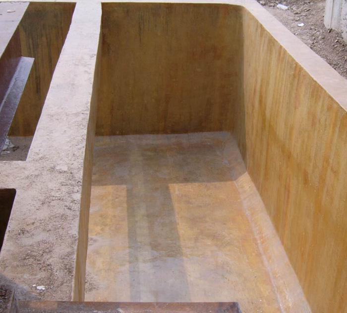 用于儲(chǔ)存水、酸堿液體、廢水的混凝土水池如:消防水池、中水池、酸堿池、污水池、廢水池、氧化池、調(diào)節(jié)池、沉淀池、隔油池、游泳池等由于水及酸堿液體長期浸泡、腐蝕,各大中城市的高層建筑生活水池、消防水池、蓄水池及化工、醫(yī)藥、電力、機(jī)械、電源、電鍍、電子、鋁材、陶瓷、冶金等行業(yè)內(nèi)廣泛使用。
